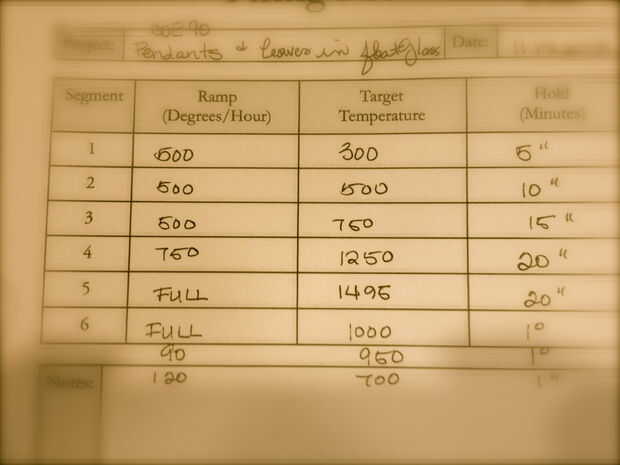 Nota: Por favor espere tiempo recocido. Calentamiento de vidrio demasiado rápido y enfriamiento demasiado rápido de vidrio crack, romper y destruir su obra. Incluir un recocido parcial en mi horario de leña porque sé que mi propio impatients.