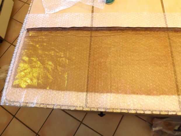 Coloque la malla sobre una pieza de plástico de burbuja con el lado de la burbuja de la malla (aunque lo he hecho la otra manera también).