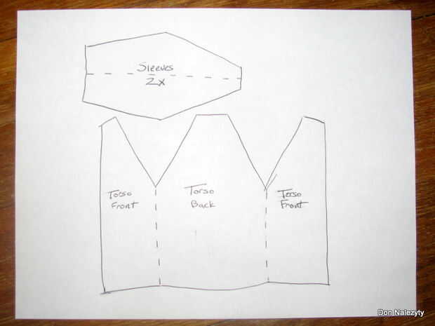 I luego dobla cada trozo por la mitad lo largo y cortar el cono ligero y cortan el amplio ángulo de la punta amplia para el accesorio al torso.