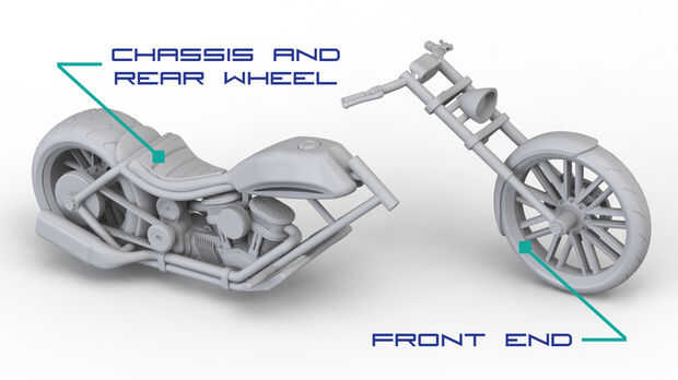 Descargar el modelo 3D de la moto "FusionWeld 2012 Chopper 1 20 Model.ZIP" o pedir el modelo de Shapeways.com