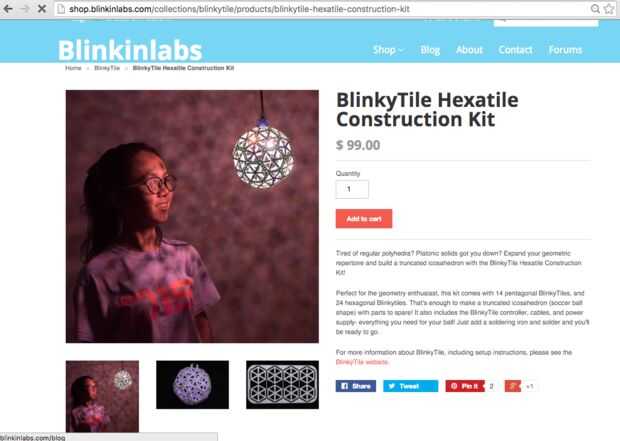 Usted puede conseguir su propio Kit de construcción de Hexatile de BlinkyTile en Web Blinkinlabs