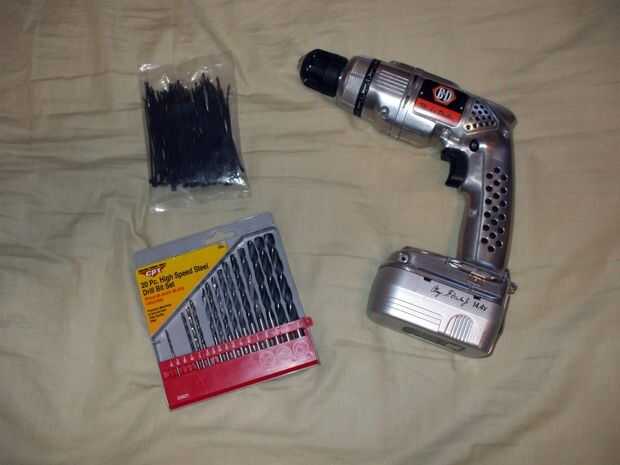 Las únicas herramientas que necesitaba para construir la lámpara eran mi taladro, una broca lo suficientemente grande para colocar la zipties y cortador de cables para recortar el exceso.