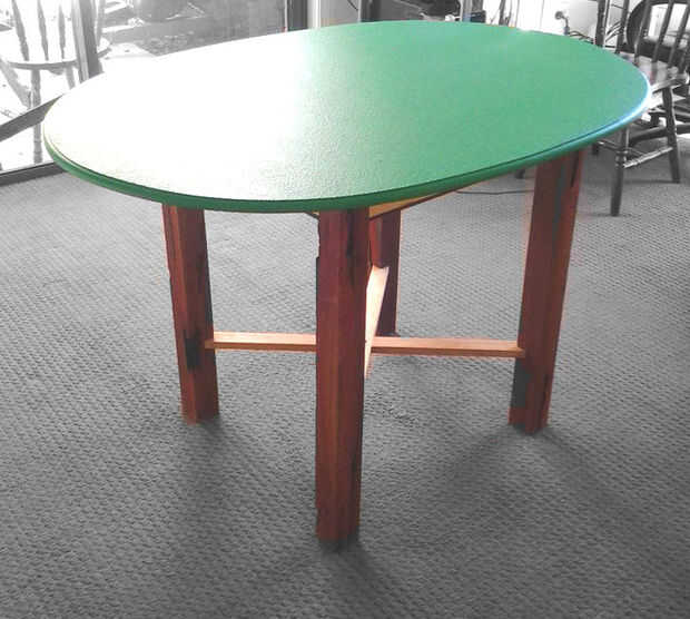 Esta mesa con capacidad para 5 a 6 personas cómodamente.Paso 1: Haz algo callejón de Bowling de maderaEste podría ser el interruptor de acuerdo. Tuve suerte de tener a alguien dar un montón de gratis!Paso 2: Hacer redondoPor supuesto no tienes que ha