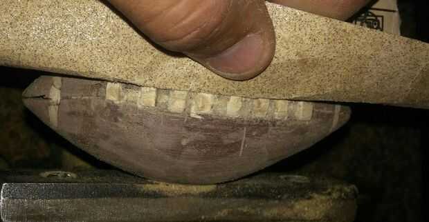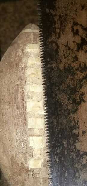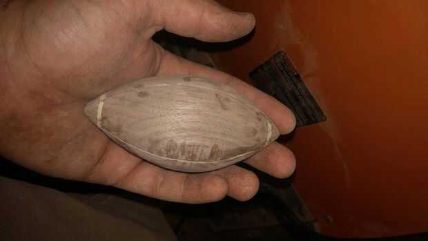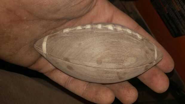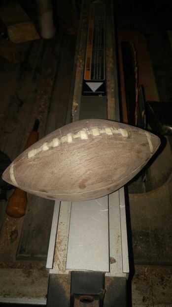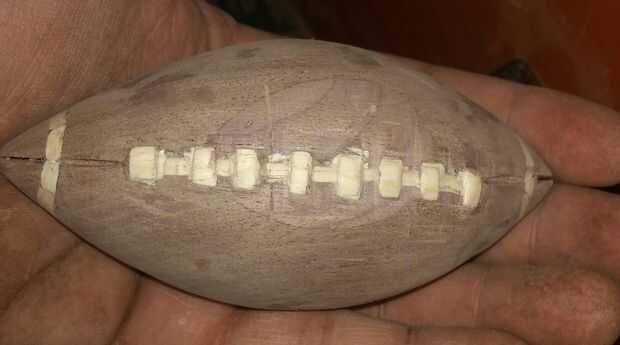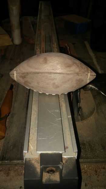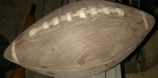 me fijo los cordones lo mejor que pude, y empecé a mano lijar el fútbol hacia abajo. Yo utiliza papel de lija de grano 100 utiliza papel de lija de grano 150 y lijar el fútbol entero. Asegúrese de que obtener entre los cordones.