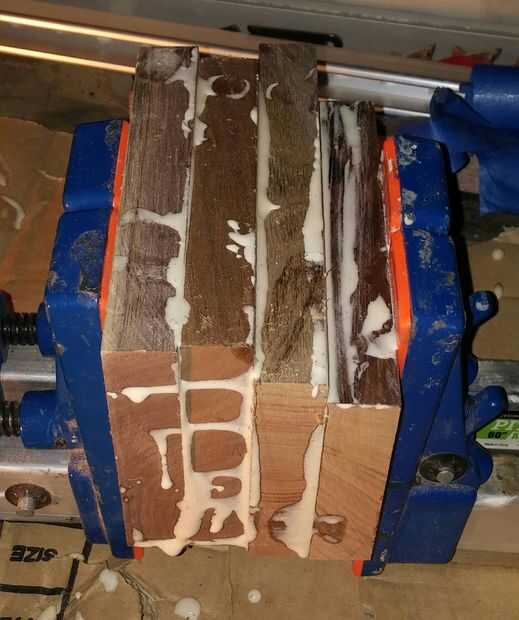 Preparar las mordazas para el encolado, luego comenzar a pegar cada pieza. Déjelo secar.