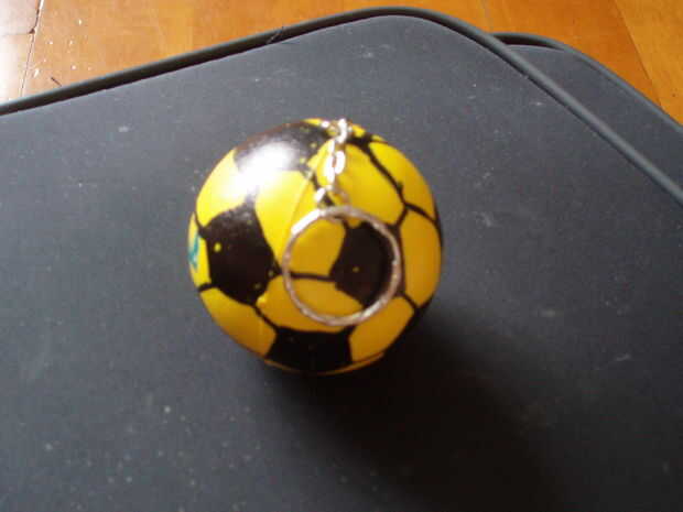 Hágale un agujero a través de su bola con algo agudo y fino. Un taladro sería útil. tejer el hilo hasta el final de la cadena de clave, poner pegamento en el cable y a través del orificio. Envuelva el extremo USB en papel de aluminio y ponerlo en la ranura.