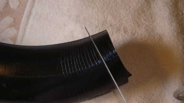 A continuación corte el tubo interior a través de uno de los extremos para que el tubo ya no es un círculo. Nota: Si desea utilizar la boquilla de aire cortar el tubo interior en el lado opuesto del final así que usted no corte lo.