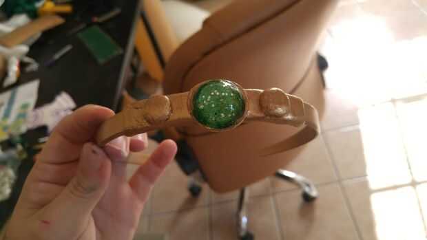 Ambas piezas fueron recubiertos en Plasti Dip a nivelar su superficie pintada luego con Krylon oro pintura de aerosol metálica. También he añadido una de mis joyas de fundición fácil a cada uno de ellos utilizando pegamento caliente.