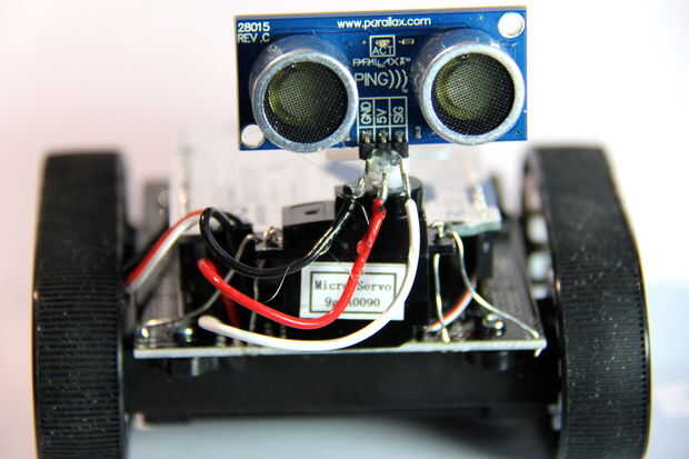 En este siguiente paso, vamos a poner el sensor ultrasónico Ping de Parallax en el servo y adjuntarlo a nuestro Arduino.