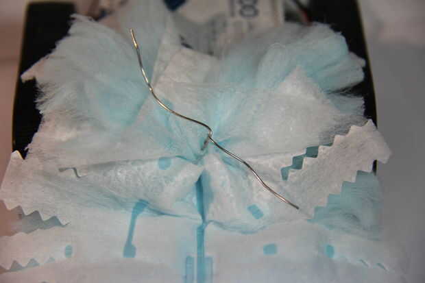 - Cortar alambre aún más, esta vez dos cables (~ 4 pulg.) de largo