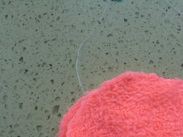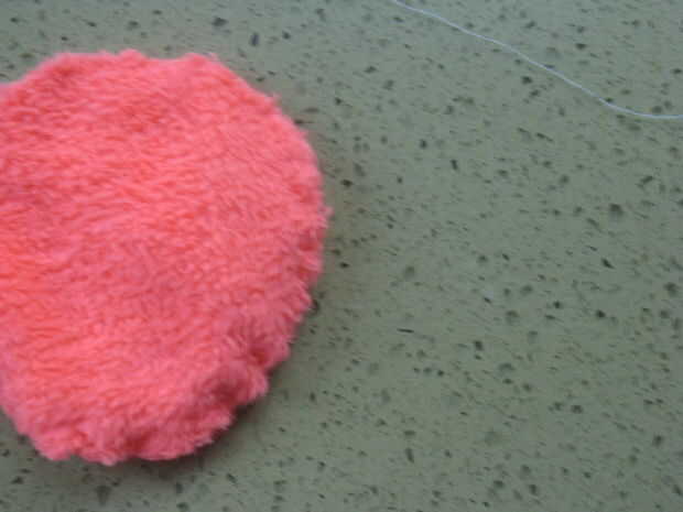 Establecer los círculos de modo que los lados borrosos enfrentarán. Entonces, cualquier mano coser o utilizar una máquina de coser para coser los círculos juntos. No recorrer todo el camino, aunque. Deja un 3 o 4 pulgadas de área unsewed para Mecharla. Girar el círculo de adentro hacia fuera para ambos lados borrosos mirar hacia afuera. Usted puede notar que el Fuzzmeister es mucho menor ahora. Eso es porque he decidido reducir su tamaño para acelerar el coser a mano (no puedo obtener la máquina de coser para trabajar. Es muy antiguo)