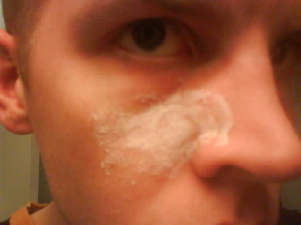 El pegamento debe ser frotada suavemente en la piel para que no te espacios entre los poros o las arrugas, usar más pegamento en el centro que en los lados. Luego dejar secar.