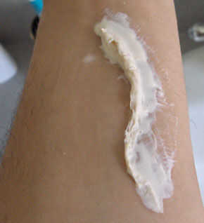 Como lo hizo con el primer lado de la herida, aplique una capa en una generosa cantidad de látex, el papel de la mezcla en tu piel.