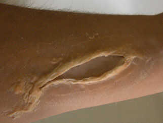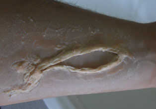 Una vez que ha secado el látex necesita establecer con poco Neutral sistema de polvo para quitar la adherencia y para asegurarse de que el maquillaje no gelatiniza la aplicación. Sacuda el polvo de acceso.