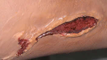 Después de que aplicar un maquillaje rojo oscuro en el interior de la herida.