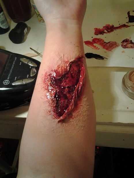 -Falsa sangre (yo prefiero pasta de sangre, también conocida como sangre coagulada)