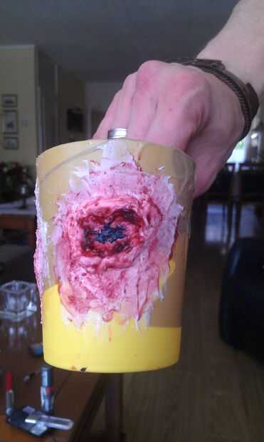 No te olvides de hacer moretones, hará algunos silicona de sangre y algún maquillaje azul funciona también bien.