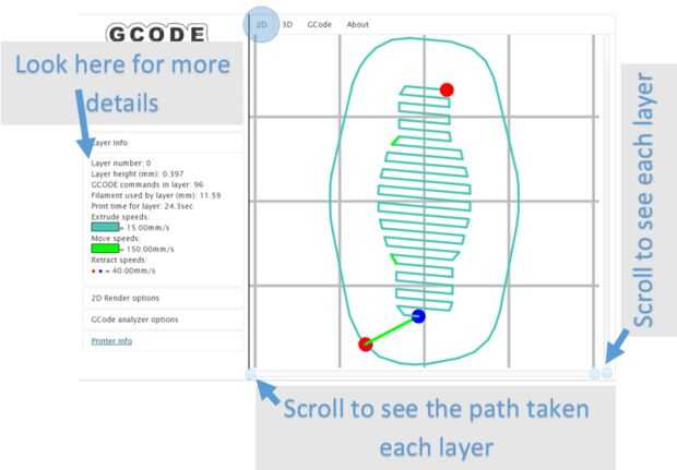 Este modo te permite ver cada capa individual y se llevará a la ruta de la impresora. También puede comprobar las velocidades de cada capa y si es necesario cambiar la velocidad en configuración avanzada cuando se imprime.
