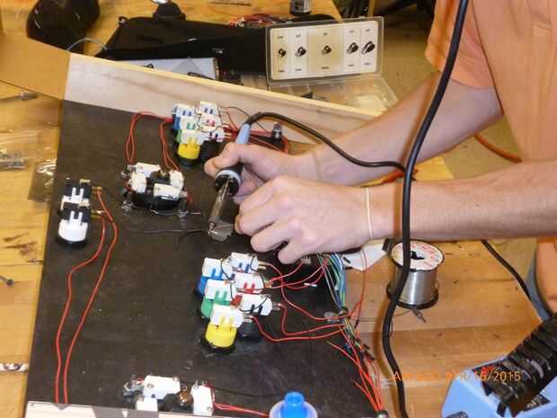 2) soldar todos los pines de tierra a un autobús para un lado y dupilicate con el otro lado pero en otro conector de tierra. (Si está utilizando dos Joysticks y botones varios, aconsejo conectar terrenos para jugador uno y el jugador 2)