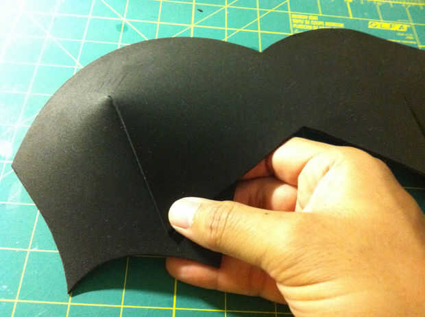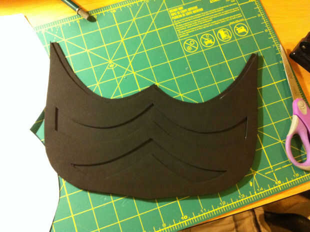 A continuación, cortar la pieza del bra y usando el reborde en la pieza de estómago (ver comentario de la foto) para mantener en su lugar, caliente pegue juntos. Si usted necesita reajustar una vez que el pegamento se haya enfriado, la pistola de calor ablandará el pegamento así que usted puede volver a colocar. Una vez que hayas formado la pieza del bra, pegamento en el pedazo del hombro y recortar las patas en la forma de "M" al exterior del cuerpo.
