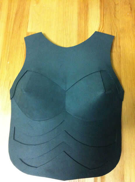 Hay un pedazo del hombro, un pedazo de sujetador y un pedazo de estómago. He intentado incluir fotos arriba para ver la forma de ellos para su propia referencia. Cómo he podido ajustar esto era hacer papel y modificar. Una vez que la pieza de estómago cortar, recortar el contorno de las costillas y encolarlos. Para la pieza de cuerpo, usé la pistola de pegamento caliente para montar esto. La parte inferior de la pieza del bra es la misma curva que la parte superior de la pieza de estómago. De esta forma que se adaptan perfectamente. Tenga en cuenta que la curva es cuando se forma la parte del pecho del sujetador.