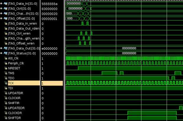 JTAG es especialmente ideal para este diseño, ya que está ya bien establecido estándar se utiliza extensivamente para depurar microcontroladores de casi todos los vendedores. Por otra parte, para el desarrollador, tener una interfaz JTAG será muy útil cuando se intenta visualizar señales de bajo nivel desde el microcontrolador.