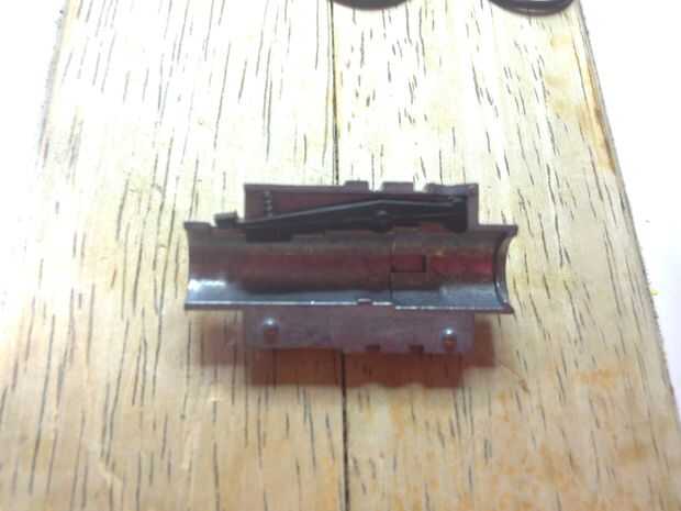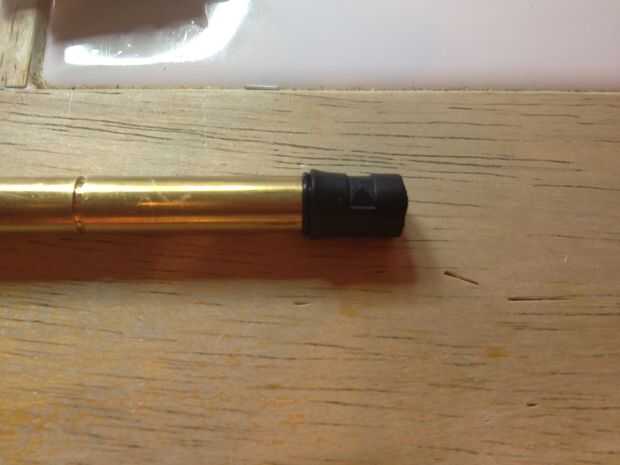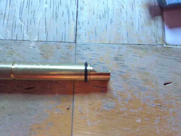 Coloque el anillo más pequeño en la muesca en la parte exterior del cañón. Lugar la siguiente bucking del salto-para arriba. La muesca rectangular en la parte exterior del cañón debe estar directamente sobre la brecha en el extremo del cañón (si nos fijamos, usted debe ver una goma bump que resalta Dónde está la brecha en el cañón).