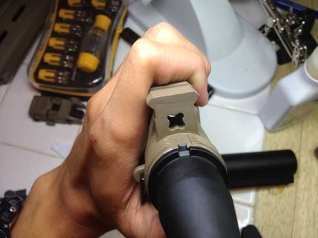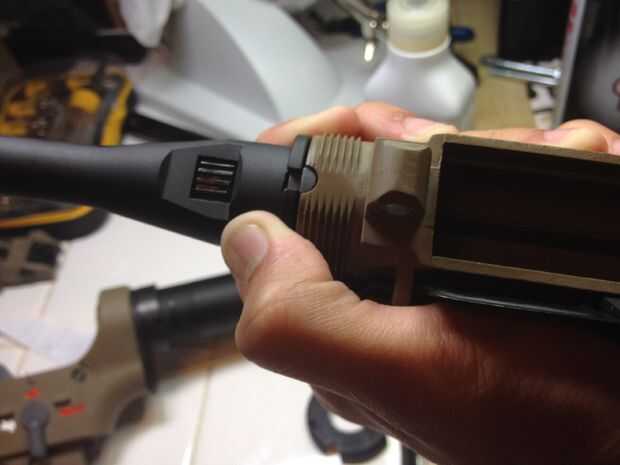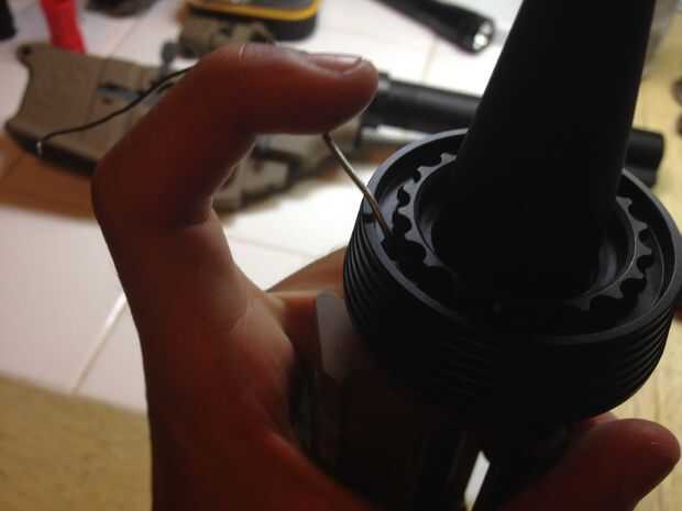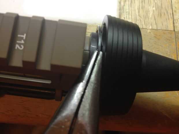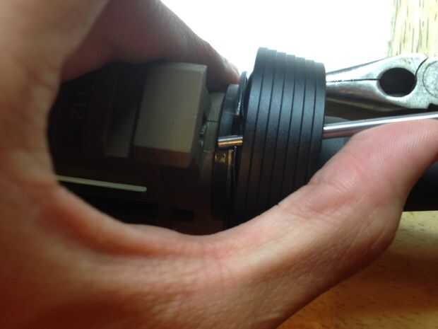 Deslice el anillo de delta en el cañón exterior y apriete girando la pieza en forma de engranaje. Que tenga la herramienta para hacer esto, no lo hice.