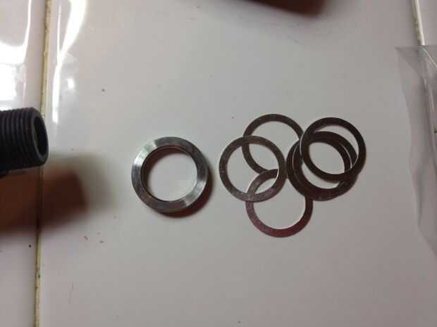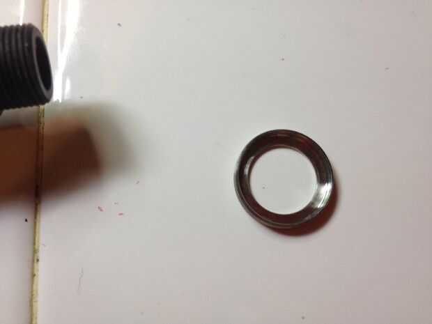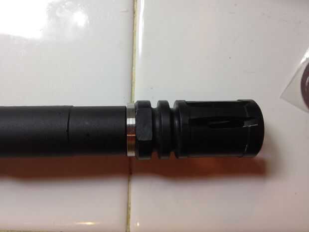 Usted puede encontrar que el flashhider no quede como cuando se está completamente apretado. Si lo desea, puede utilizar a los espaciadores de metal entre el anillo de acero y junta tórica para que el flashhider quede correctamente cuando bien apretados.