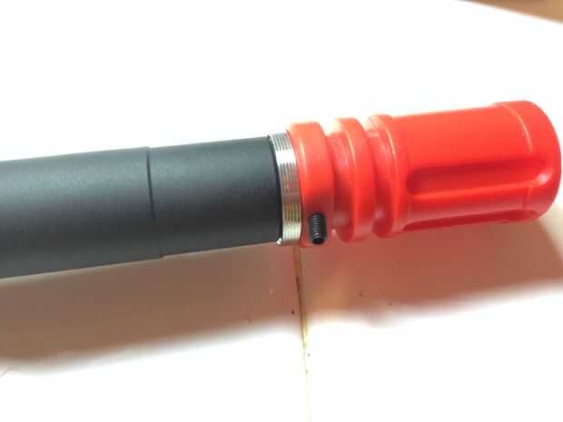 Atornille el flashhider. Si utilizas el plástico naranja uno, use el pequeño tornillo para asegurarlo en su lugar.