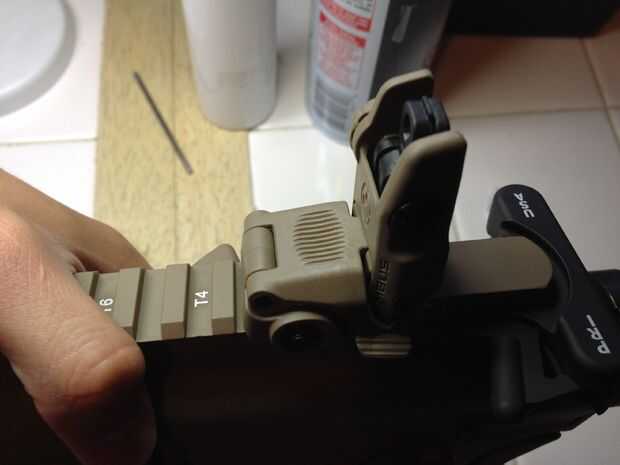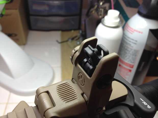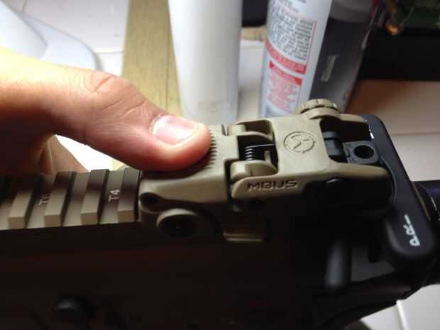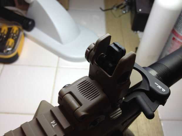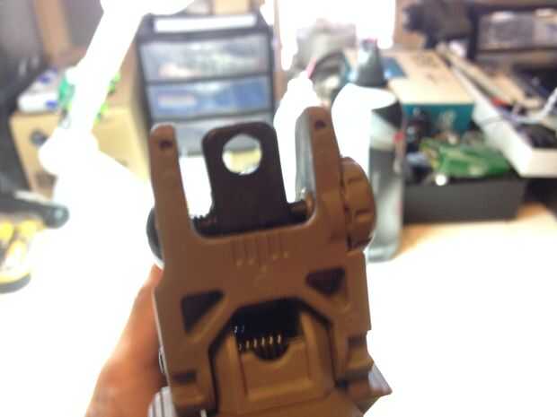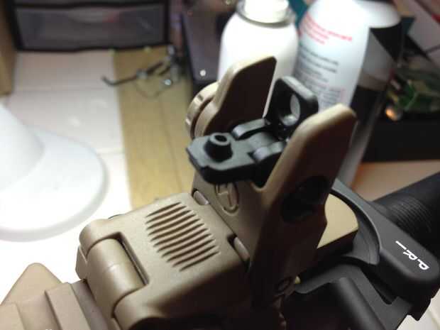 La mira trasera permite dos aberturas diferentes. La primera es cuando dos partes están cerradas y da una abertura más pequeña. Si tira hacia delante sobre la pequeña pestaña en la parte superior, se separan las dos partes y consigues una abertura más grande. Que se utiliza es realmente personal preferencia. El más grande puede ser mejor para situaciones de poca luz, o si usted necesita ver en super super rápido, pero puede ser un poquito menos precisa dependiendo de lo bueno de un tirador.