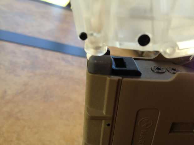 Cuando el mag está vacía, el perno debe capturar cuando está en el tubo de solución tampón (no puede ver mucho del perno a través del puerto de la eyección). Sostenga el mag y presione el botón para quitar tu revista del mag.