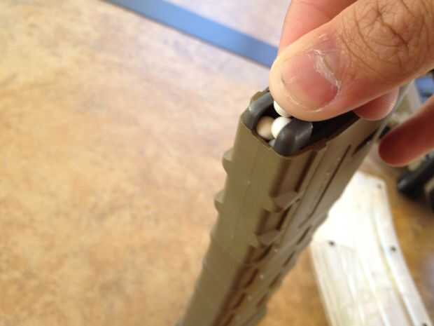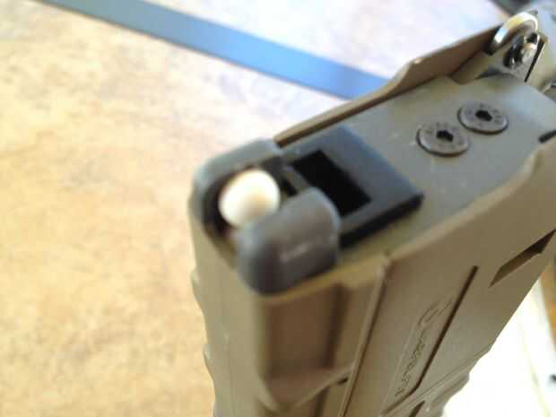 Carga 6mm airsoft bbs (recomiendo. 20. En serio chicos, es una pistola de gas.) en la tapa de la revista. Esto puede hacerse a mano o con un cargador de la velocidad. Si utiliza un cargador de la velocidad, debe poner su dedo contra el frente de la revista para que las municiones no sólo entran por la parte frontal.