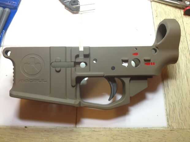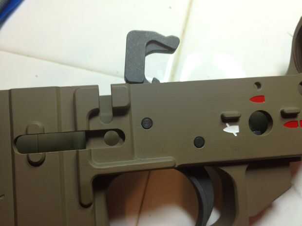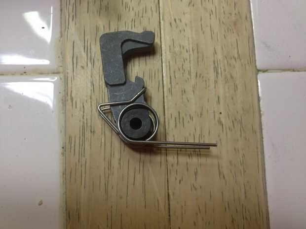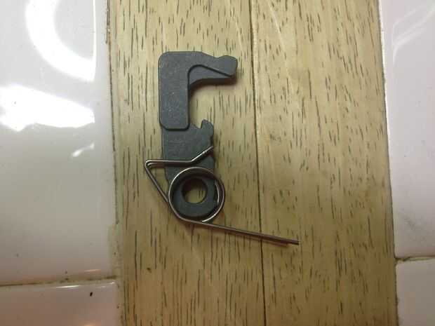 Las dos clavijas de la primavera en el conjunto del martillo se reclinará sobre el perno usado para sostener el gatillo en su lugar.