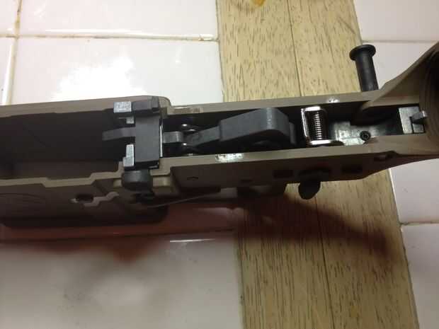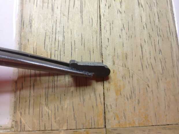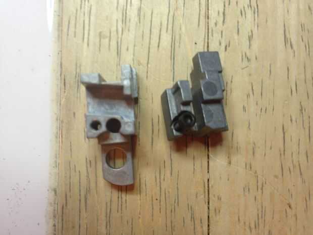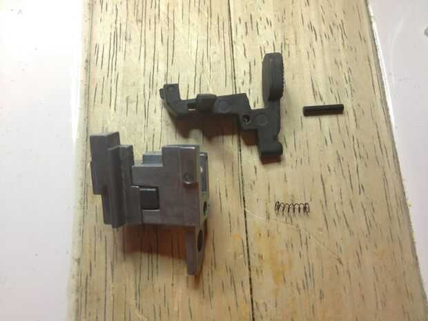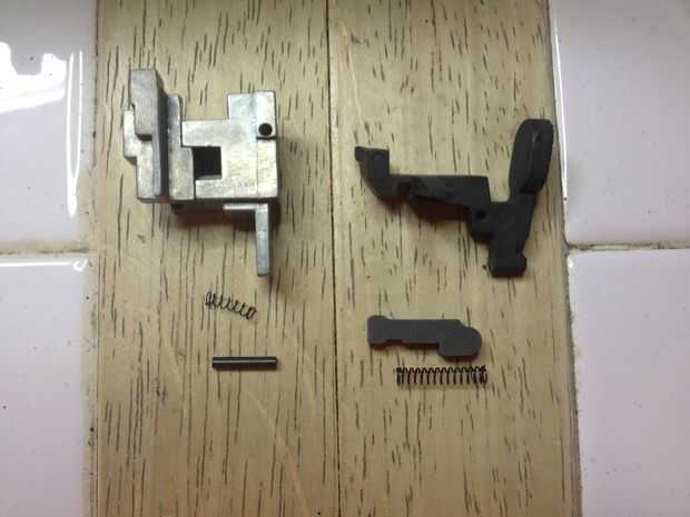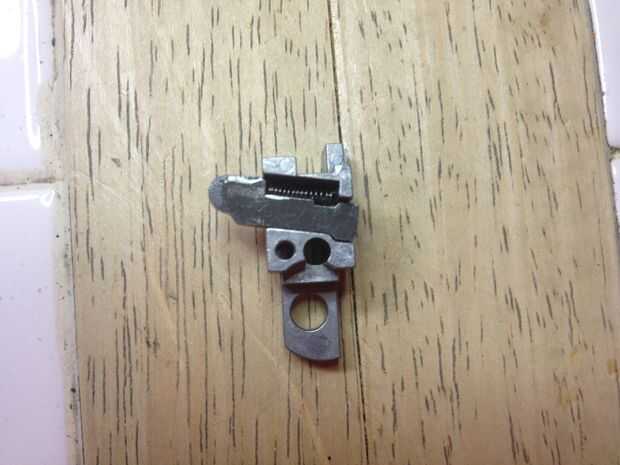 En mi kit, es necesario a parte del archivo de la 'percutor' y el aceite que antes de él podría deslizarse libremente en el bloque de metal. Para probar esto, sostenga el bloque de metal con la mano y tratar de empujar el perno de la leña. Si no se deslice libremente ni resorte en su lugar libremente, necesita del archivo como se muestra en la imagen. Una vez que mueve libremente, atornillar el bloque junto con percutor y resorte interior.