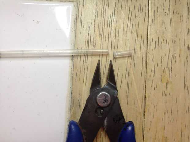 A continuación, coloque el resorte dentro del agujero en el bloque como se muestra. Con sus rabos de colada/alicate, cortar un trozo del tubo de tinta de pluma aproximadamente medio centímetro de largo. Coloque esto en el mismo agujero como la primavera (debe sobresalir un poco).
