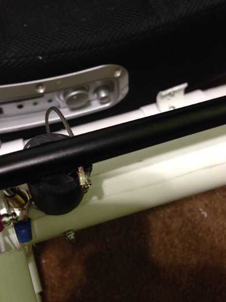 Para terminar he montado el conjunto en la plataforma y enganchado hasta la Asamblea del desplazador. Para la conexión fácil necesitaba hacer un agujero en la plataforma de montaje de la plataforma para el montaje de la palanca de cambios. Esto permitió más suave y más fácil conexión con el G25. Una vez montado lo necesitan algunos tipo de resistencia a la acción mecánica de mí tirando de la palanca de "prestado" uno de gel/pelo gomas mi esposa y envuelto en la parte superior del eje de cola al brazo cíclica/colectivo enlaces esto darme una primavera como la resistencia. A continuación quería allí a ser una dura parada para el movimiento evitar una actuación. Para ello perforó un agujero a través del eje de cola y luego uno a través de la plataforma. Entonces alimentados algunos cable trenzado de acero por los agujeros de cortar a la longitud y sujeta dos Plegadores de alambre en los extremos. Para mejorar la conexión mecánica de los plegadores de cable el a cable de acero soldado también les juntos prevenir el cable deslice fuera de las pinzas. También he añadido un tope de goma adelante del punto de pivote para elevar la posición de "liberada" de la palanca a una altura deseada. Y con ahora tengo una fea pero muy funcional e-brake que utilizo con mi PS3 y GT6. Gracias por tomarse el tiempo de leer mi primer instructivo! Espero que he inspirado o por lo menos algunas ideas ha añadido a su Arsenal. Por favor dejar comentarios y hacerme saber cómo lo hice!