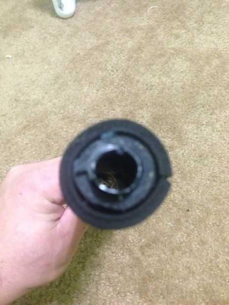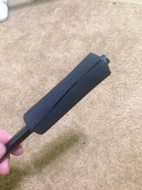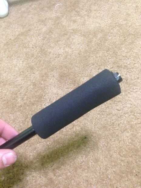 Para hacer la empuñadura que corte la manguera del calentador a la misma longitud que la primera espuma. Luego cortar la manguera de estilo de "Hot Dog" y envuelto alrededor del eje de cola y caliente lo había pegado en lugar. Luego envuelve la espuma suave alrededor de la manguera del calentador y me pegué también en el lugar. Esto me dio un buen diámetro y un agarre cómodo para el e-freno.