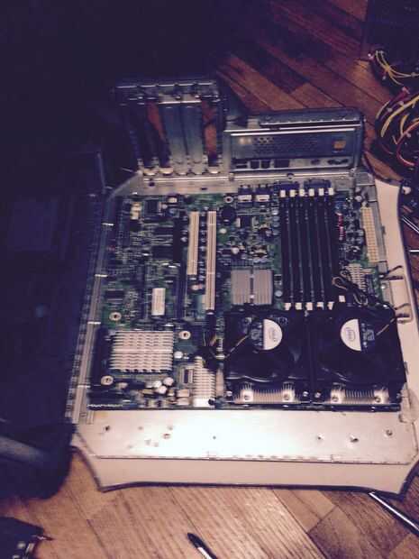 Luego necesitas perfore y rosque nuevos orificios de la motherboard porque los antiguos no se alinean. Los tornillos de soporte de la Motherboard, Tarjeta madre puedes comprar son 6/32 y vas a necesitar una broca de metal y un grifo (véase taladro grifo tabla de medidas) Asegúrese de mantener el grifo recto si quieres los agujeros a la línea arriba correctamente. Placas base servidor son bastante grandes no pude puse completamente contra el lado de la caja. Así que tuve que poner la placa base alrededor de una pulgada lejos del lado de la caja y tuve que modificar la placa más adelante en la construcción. La próxima vez que hago esta versión creo que voy a utilizar una placa base más pequeña como una micro ATX. Pero si usted utiliza una placa base más pequeña debe ser capaz de cortar un agujero rectangular en el lado de la caja para adaptarse a una nueva placa IO allí