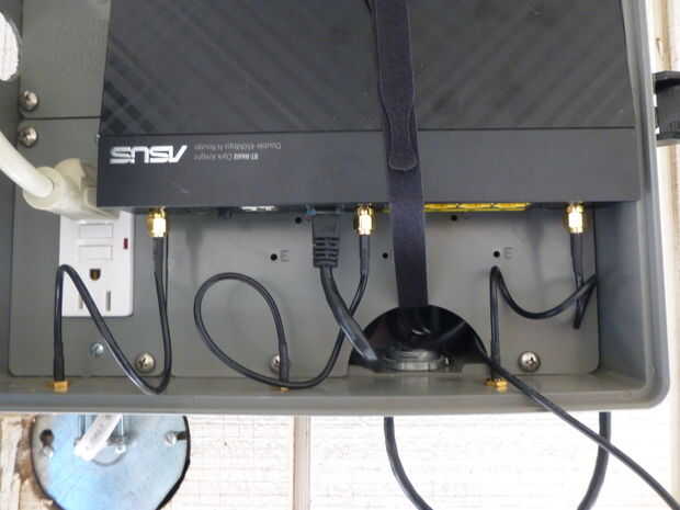 hice este recinto al aire libre para mi router inalámbrico WRT4G algunos meses (como veis en las fotos, no es muy limpio ahora XD) para conectar mis cámaras de vigilancia inalámbricas IP. Monte en un mástil en el techo de mi casa y con este bonito ro