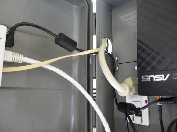 tengo un OB100 que utilizo para mi teléfono de la casa. Había atado a la puerta mediante tiras de velcro y me une el otro extremo a la caja de teléfono principal para mi casa. Yo uso los lazos del velcro para limpiar el cable de red al router.