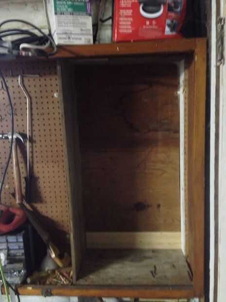 Añadido un 5/8" pieza de madera contrachapada para la parte posterior y laterales del gabinete y sellado un pequeño hueco en la parte inferior con un trozo de moldura.