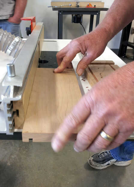 La moldura alrededor de los lados y la parte delantera también fueron cortados en la mesa de fresadora. Ya que no puedo cortar y tomar fotos al mismo tiempo, algunas de las fotos son de mis encantadores compañeros trabajando en la misma máquina =)