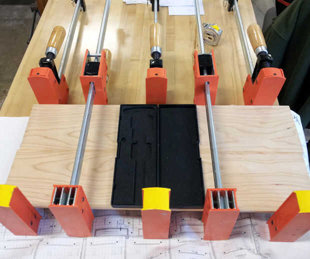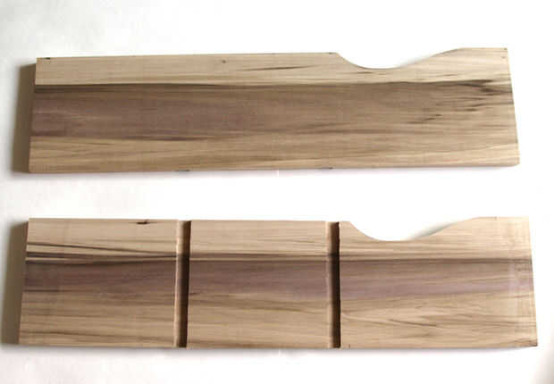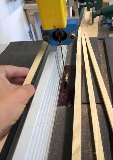 Para hacer la pieza posterior, 1" espesor pieza de pino de torrey es volver a la sierra en la sierra en dos 0.5"-piezas + y alisado en la pintura.