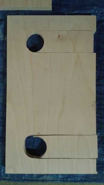 Para determinar donde van los agujeros, determinar la distancia entre los tubos y restar el diámetro de la 1 de los tubos. Le dará la distancia entre los agujeros, así que tome la mitad de esa medida y marca a la izquierda y a la derecha del centro horizontal de la Junta y su marca de taladro. Asegúrese de mantener alrededor de 2" de arriba donde el agujero termina como todo el gabinete gracias a esta pieza.