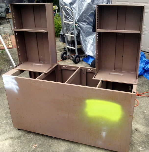 planeaba utilizar solamente el hueco hacia fuera del gabinete de archivo poner la sobreabundancia de la abuela de papel de embalaje pero odiaba a no utilizar los cajones algo así entonces empecé a organizar hasta pensé esta idea funcionaría hacia fuera. Jugando con pintura en aerosol también.