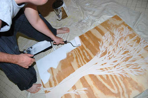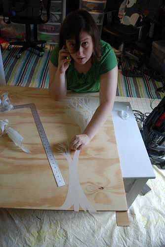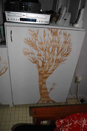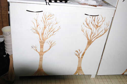 Por lo que mi esposa es increíble, pensó que sería divertido si pintamos árboles en las puertas como negativo b y c. Se ve muy bien en la vida real con el grano de madera detrás de él. Finalmente vamos a añadir colorido deja así, sino que vendrá más adelante.