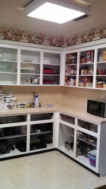 Limpio, limpio, limpio! Otra vez ¡ Este paso debe más fácil que la primera vez que tenía que limpiar. Necesita limpiar cualquier derrame de pintura, basura, etc.. Quitar toda la pintura, cepillos y otros equipos y disponer de ellos o guarde en sus respectivas áreas. Esto te deja con quitar la cinta de pintor y hojas. Es tentador simplemente rasgar todo fuera en una satisfacción de golpe. Esto es una mala idea, como la pintura que seca sobre él se une a la pintura en los gabinetes. Usted podría terminar estafando a partes de su hermosa pintura del gabinete. En cambio lentamente retire la cinta y cortar cualquier conexión pintura con una cuchilla afilada, dejando una transición de bella línea recta entre sus paredes y los armarios. Disponer adecuadamente de la cinta y paños.
