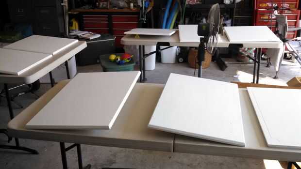 Como con la cartilla, apuntalado las puertas para permitir el flujo de aire como yo les pintaba. He utilizado pinceladas larga recta desde la parte superior de la puerta hasta el fondo, o desde el fondo hasta la parte superior. He probado a hacer trazos de pincel suave y para evitar que los surcos que forman las cerdas en la pintura al flujo y transición maravillosamente un movimiento al siguiente.