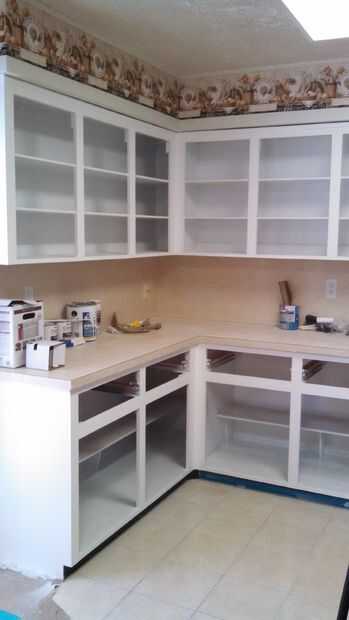 Para el exterior de los gabinetes, puertas y cajones, utilicé un pincel cerdas sintéticas dos pulgadas en ángulo para darle un aspecto más profesional. Me ha gustado las dos pulgadas uno ya que cubrió una zona agradable (lo que significa menos pinceladas necesarias), mientras aún cabiendo los tableros más pequeños entre las puertas del armario (menos goteos de pintura de las cerdas no utilizadas). Asegúrese de permitir el tiempo suficiente de pintura se seque entre capa y capa.